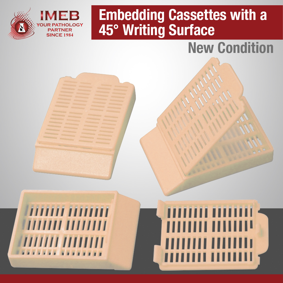 Special design cassette with secure snap lid. Features a large 45° writing surface and an open center tab that opens opposite the writing area. The cassettes (with unattached lids) are ideal for an automatic cassette printer. Each case includes 1,000 cassettes (2 dispenser boxes of 500, and one dispenser box of 1,000 lids). Also available pre-packed in plastic tubes or taped and stacked for printers. Contact our sales representatives for availability and pricing. 1-800-543-8496
