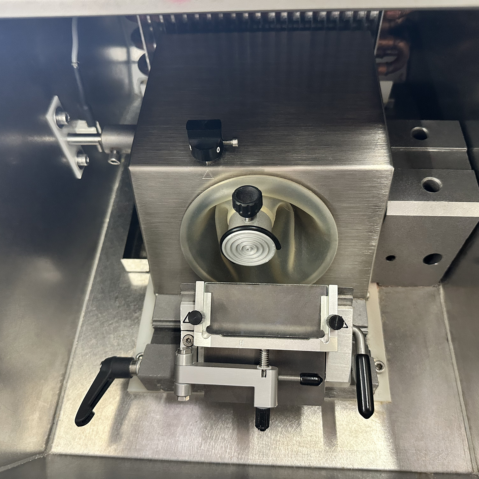 - External coarse feed control with a manual wheel – Allows easy and quick specimen trimming.