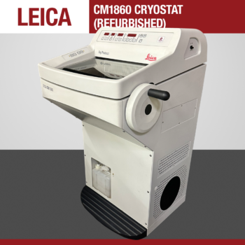 The Leica CM1860 is a robust and great addition for any lab. A designated finger guard on the Leica Premium blade holder covers the blade when you’re not sectioning. The Leica Biosystems blade ejector and magnetic brush enable you to safely remove the blade from the holder without touching it. The Leica Biosystems precision microtome helps produce consistent quality sections. The microtome is encapsulated, thus providing for easy cleaning and maintenance. The Leica CM1860’s storage shelves are used for samples, object holders, tools, and accessible ambient temperature storage on top of the instrument. Single-function keys and easily readable LED displays provide all functionality without the need to scroll through multiple long menus.