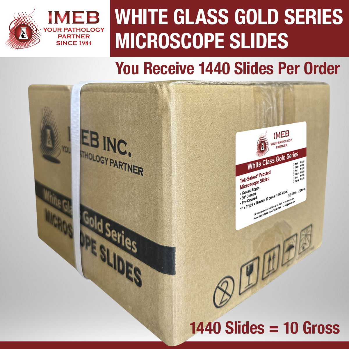 Each case contains 20 boxes of 72 pieces, totalling 1,440 slides.