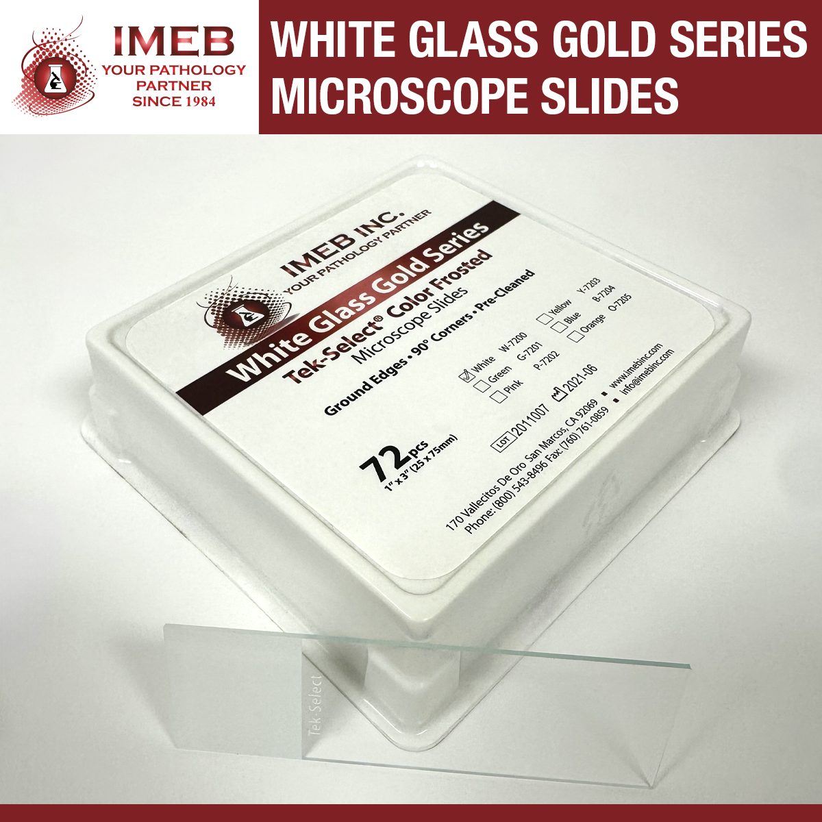 Microscope Slides, 90° Corners, Clear Glass, Gold Series, Tek-Select®