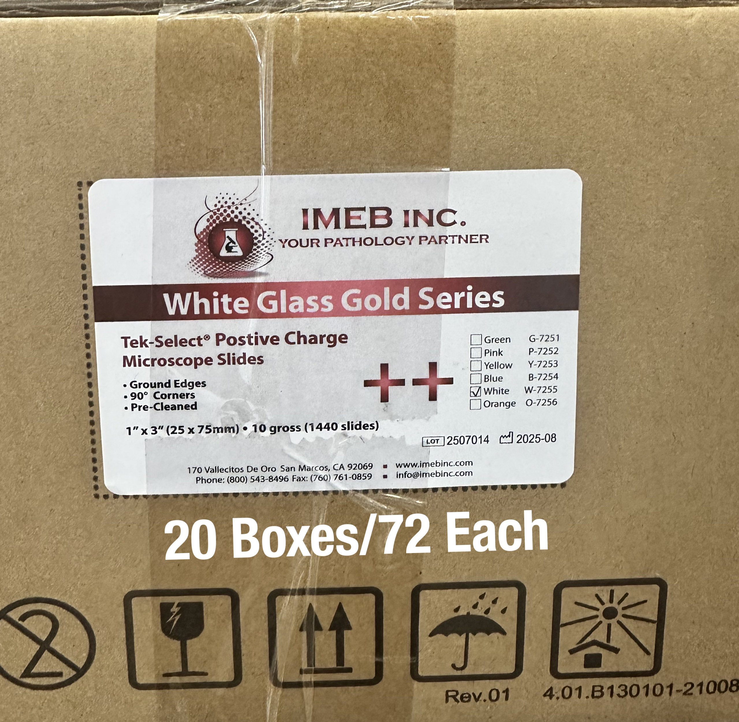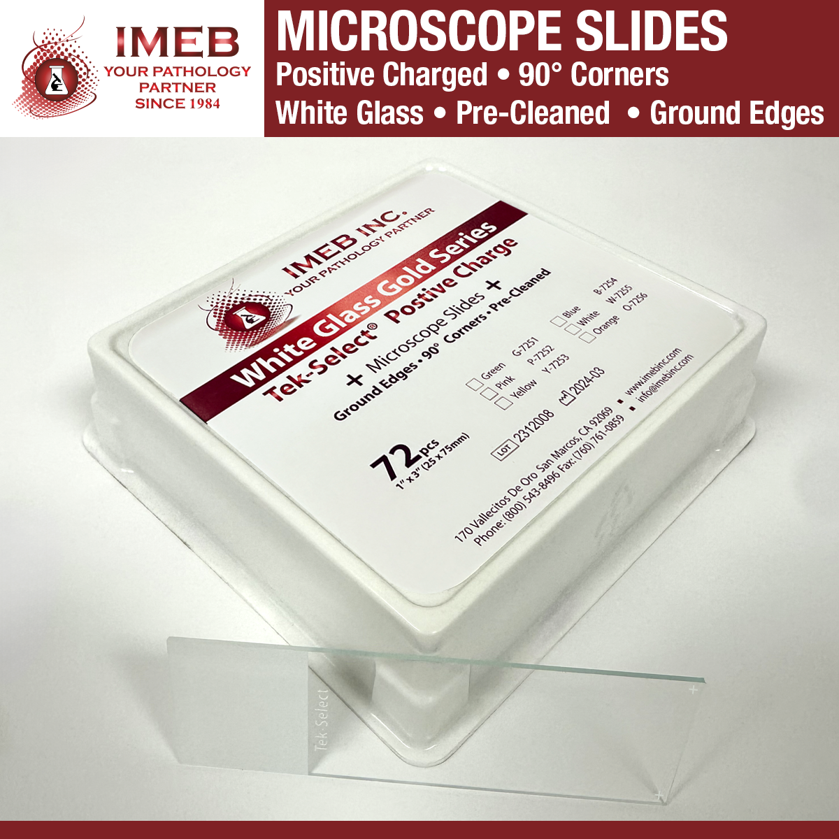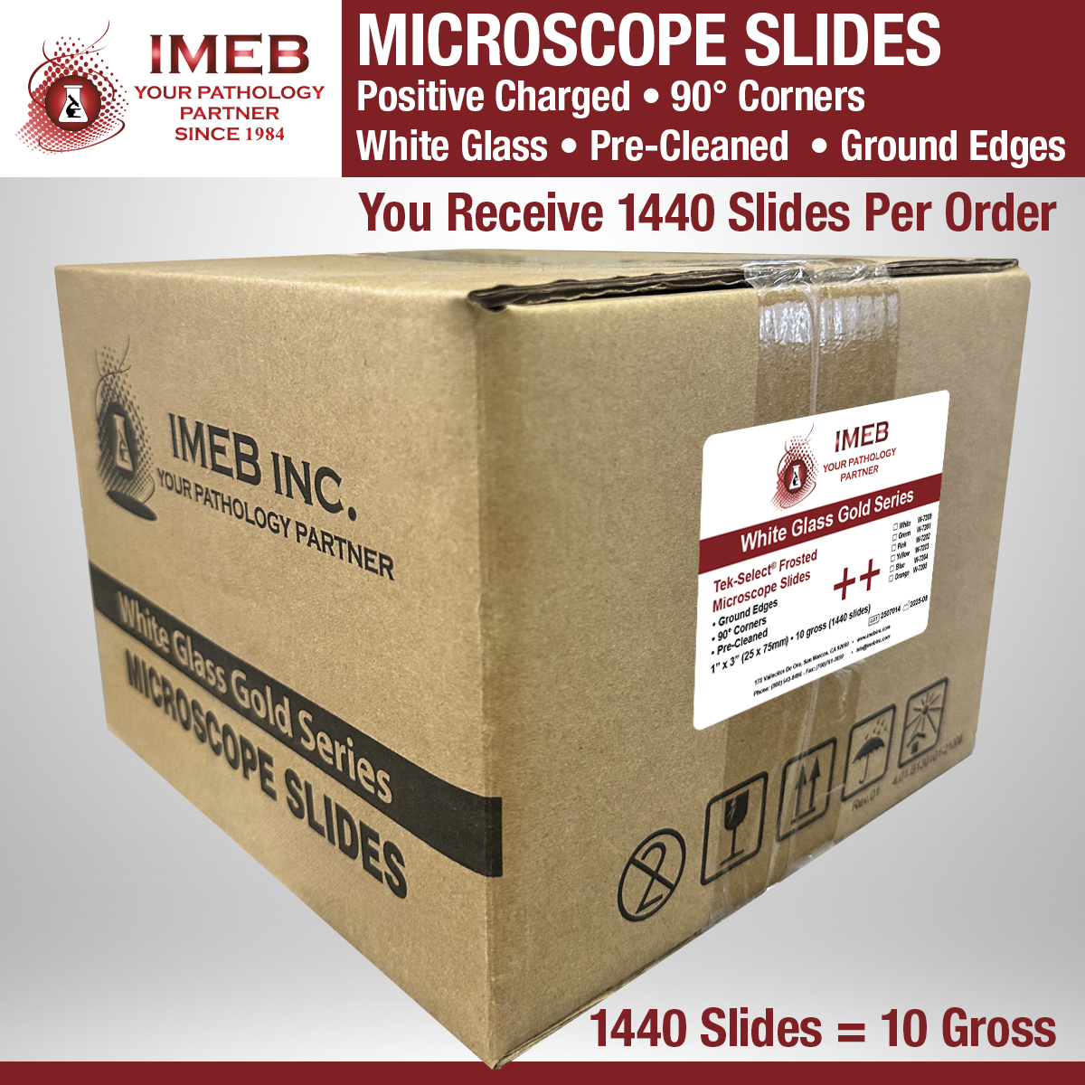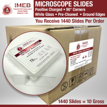 Tek-Select positive charged slides are made by a process that allows tissue sections to adhere better to the slide without using adhesives or protein. They also help improve tissue adherence in microwave staining. Cytologic preparations placed on these sides resist cell loss during enzyme digestion. DNA denaturation and RNA hybridization. 10/gross/case (1440 slides) dimensions: 1″ x 3″ (25 x 75 x 1 mm) 90° corners.